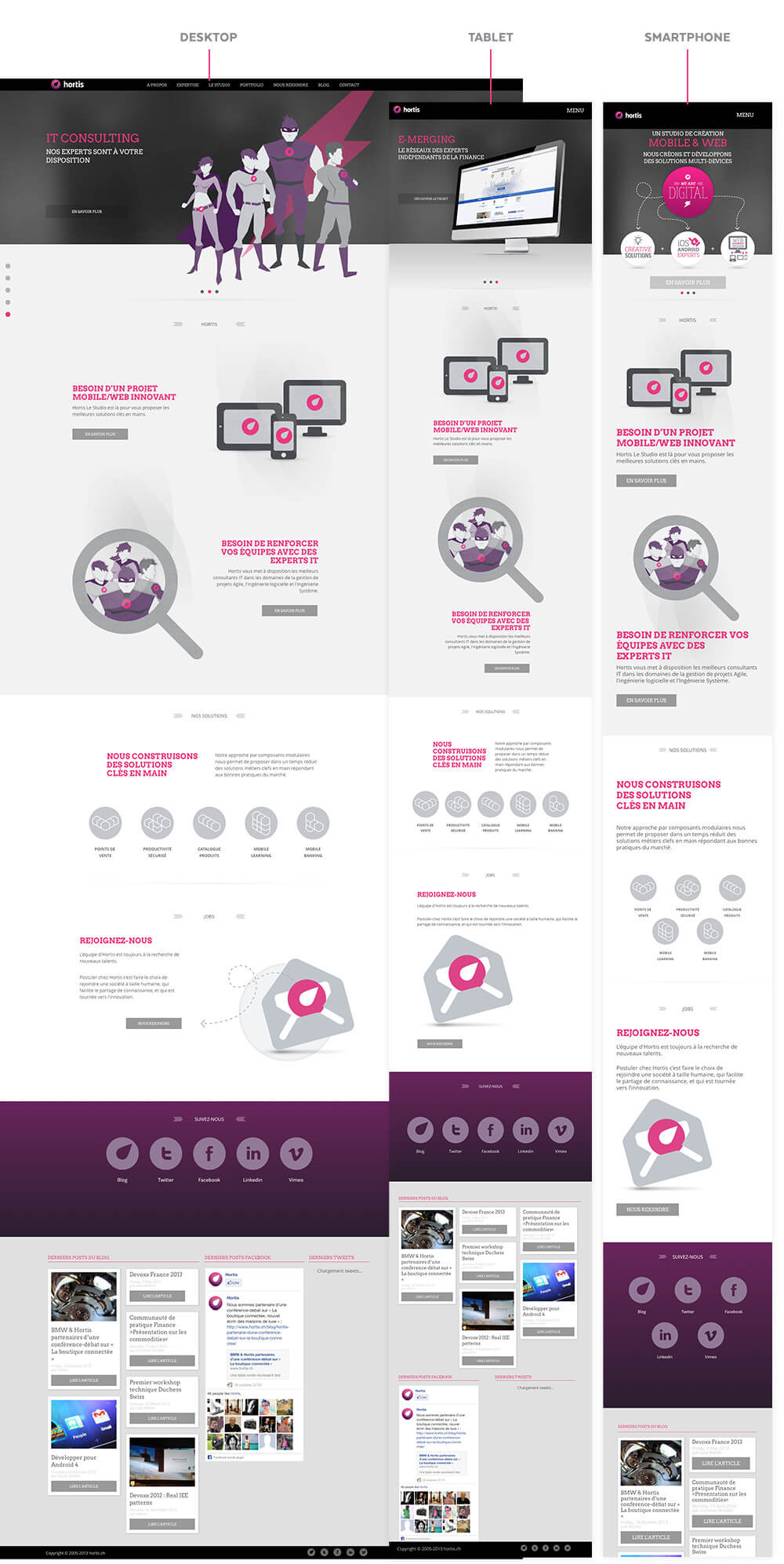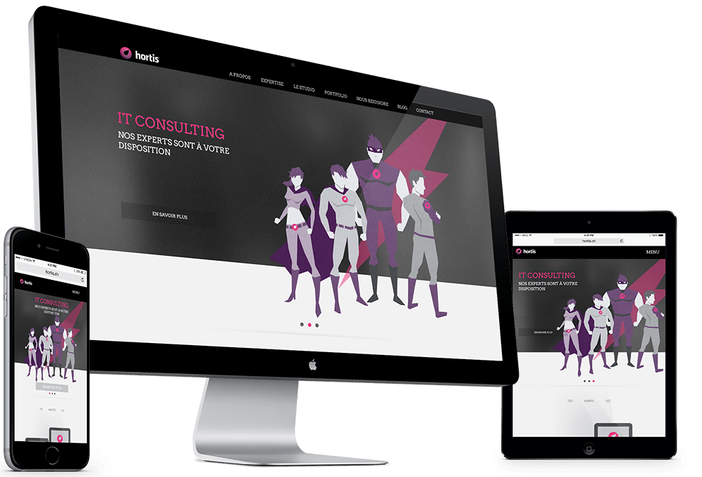 Hortis wanted to give a modern and closer image with its identity. Hortis being one of the first company that adopted the native mobile application development in Geneva is always looking for innovation, I then designed the site in a responsive way with parallax effects on the scroll.